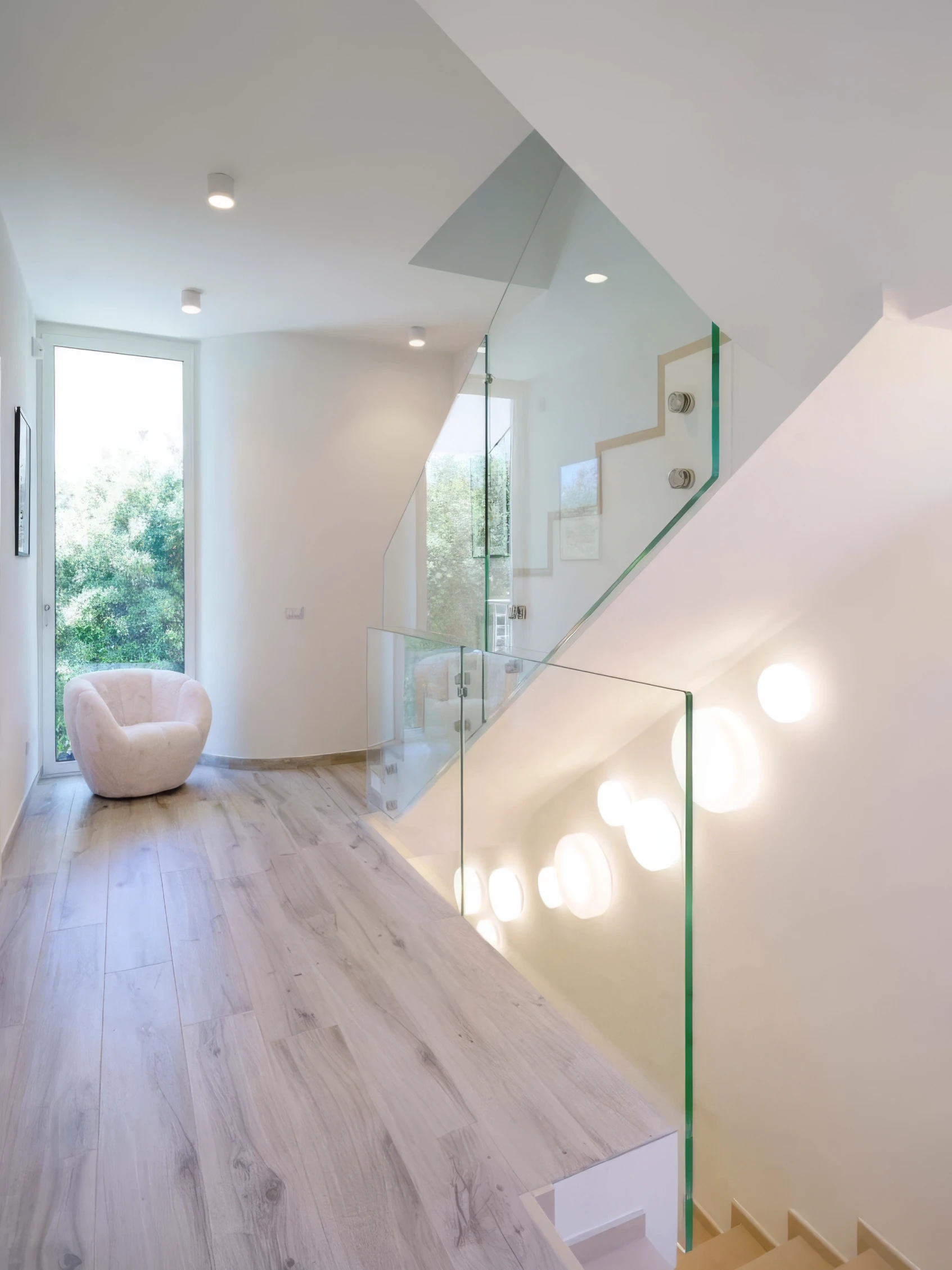 • ringhiere interne in vetro, concepite per garantire sicurezza e continuità visiva, lasciando che la luce e l’architettura restassero protagoniste;